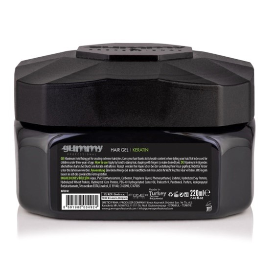 PROFESSIONAL HAIR GEL IN KERATIN GUMMIES, VITAMIN B5 (PANTHENOL), PARABEN AND ALCOHOL FREE, KERATIN CARE, EDGE CONTROL, EXTREME LOOK, 220 ML